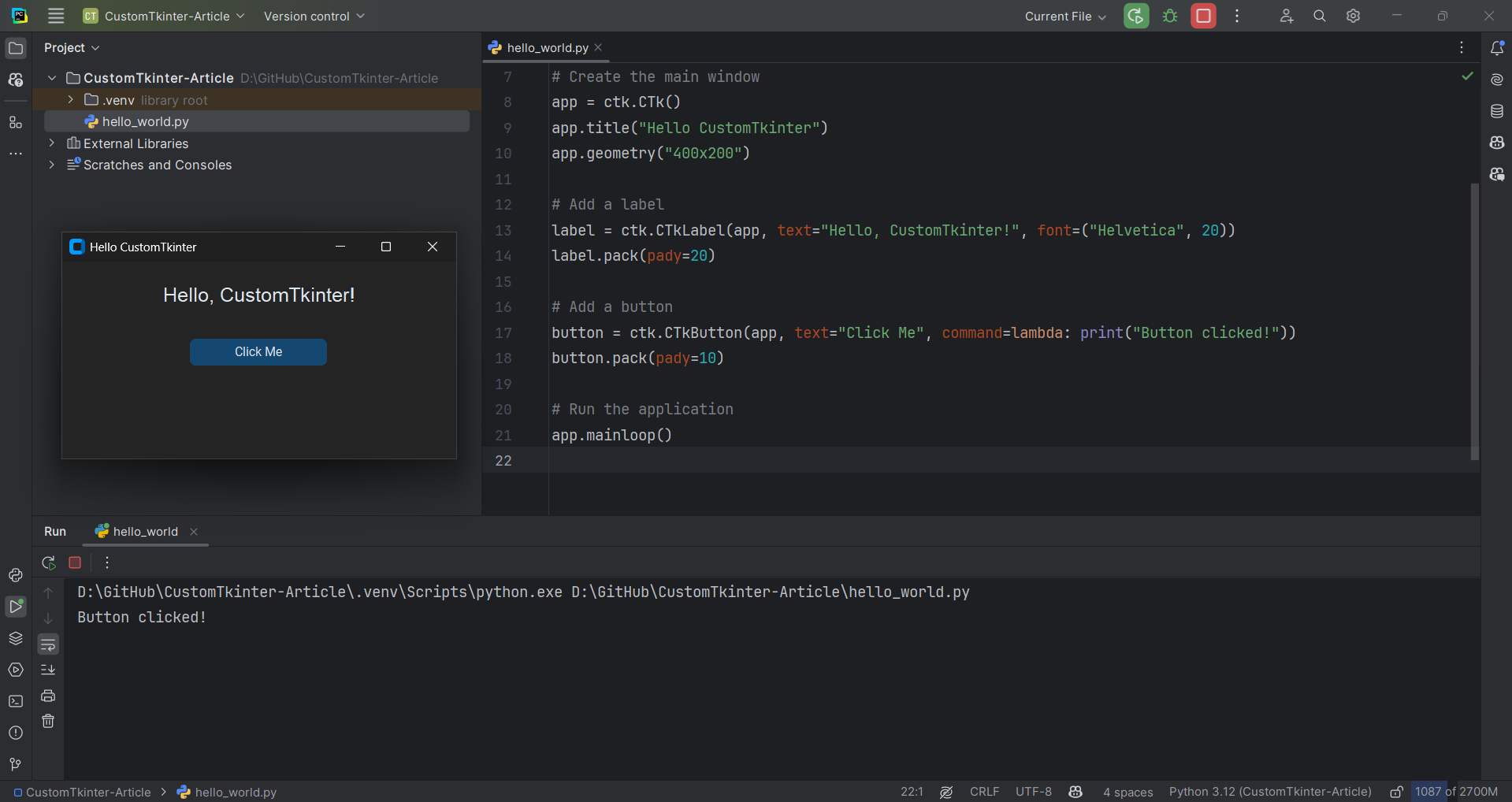 This tutorial will guide you through CustomTkinter from basic concepts to advanced techniques, providing practical examples along the way.