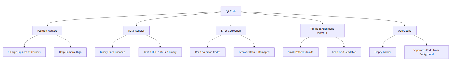 When I finally sat down to figure out how QR codes work, I was surprised by how elegant the design really is. At its core, a QR code, short for Quick Response code, is simply a way of storing data in a two-dimensional grid.